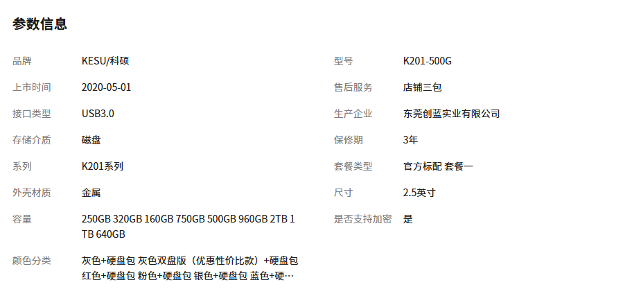科硕金属移动硬盘500G